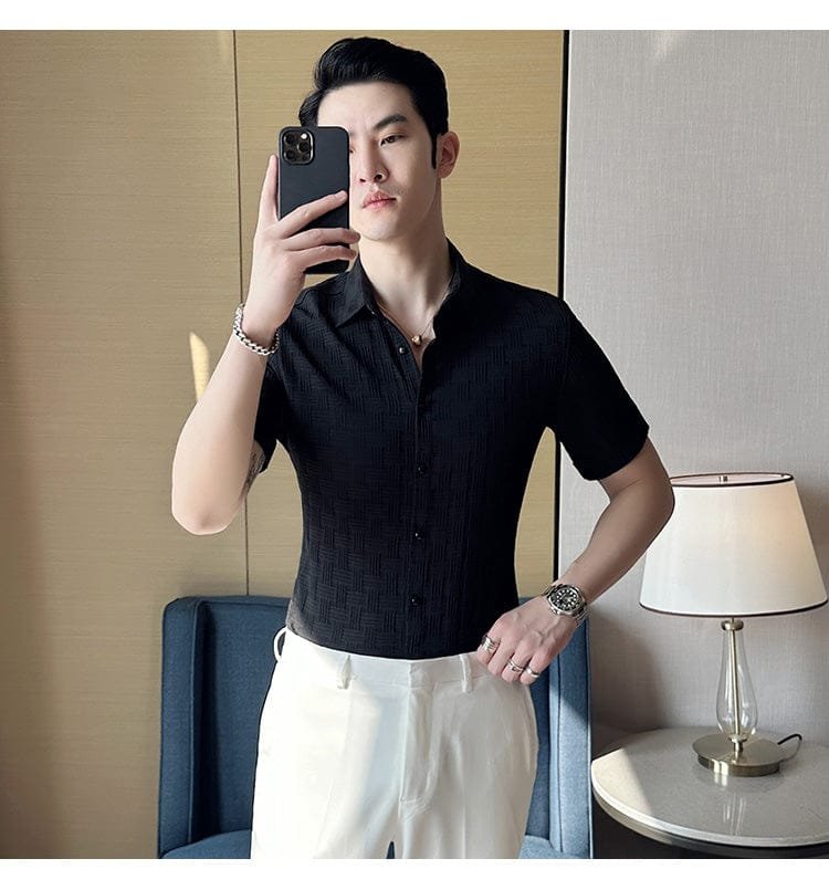 Men Textured Regular Fit Shirt with Spread Collar