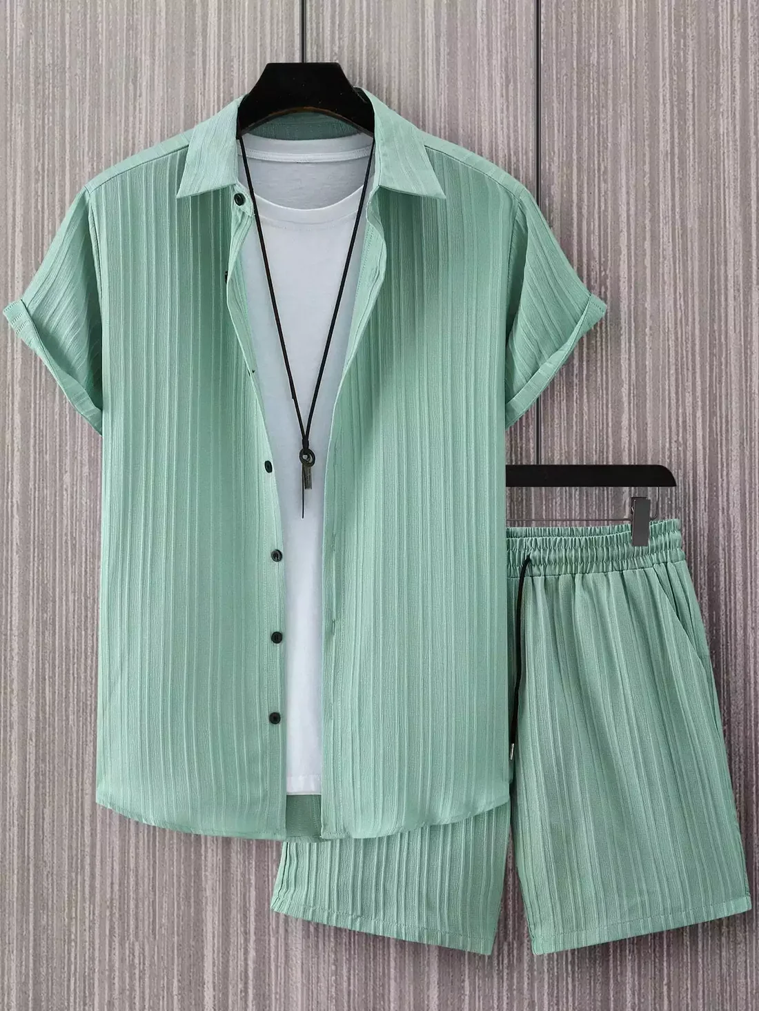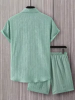 Green Solid Popcorn Design Mens Half Sleeves Cords Cotton Material